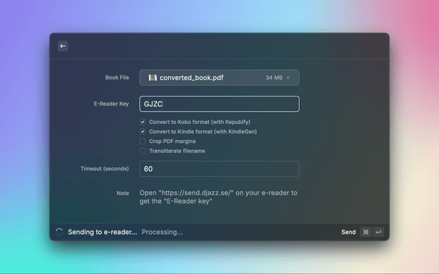 Send ebooks to Kobo/Kindle devices through https://send.djazz.se/.