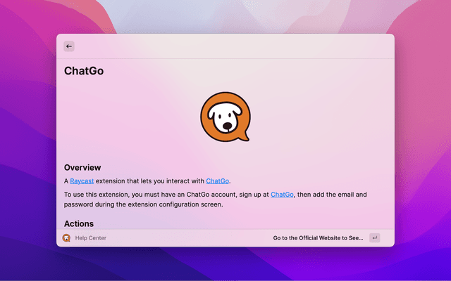 To use this extension, you must have an ChatGo account, sign up at ChatGo, then add the email and password during the extension configuration screen.