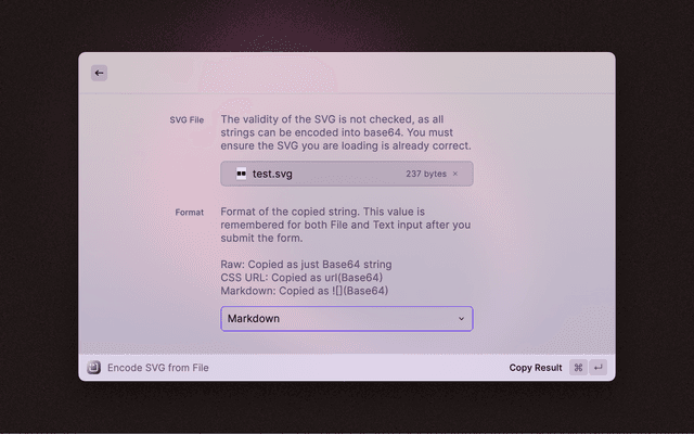 Convert SVGs to base64 strings, perfect for non-SVG enabled Markdown renderers.