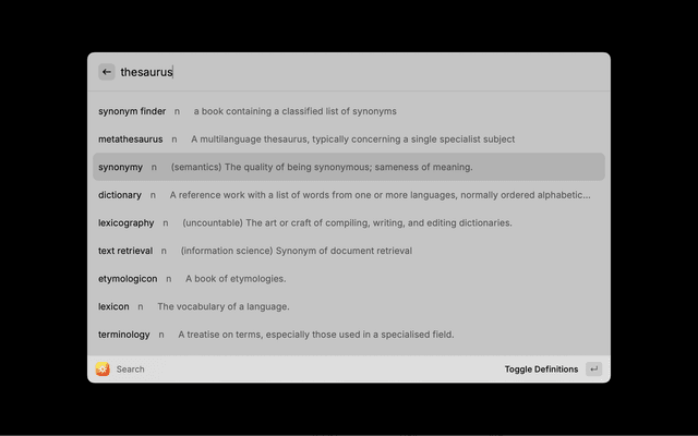 A powerful English thesaurus and brainstorming tool that lets you describe what you're looking for in plain terms.