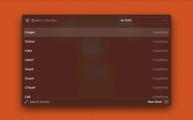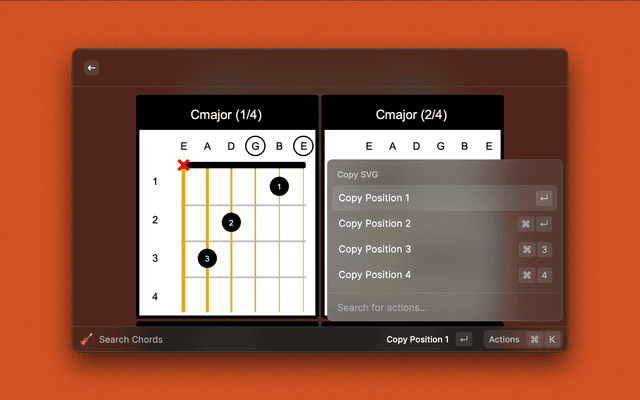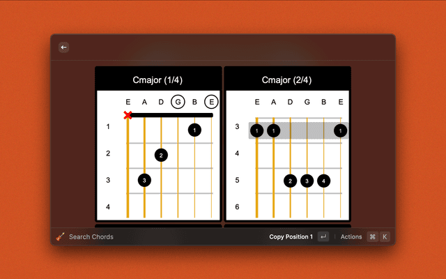 Lookup chord diagrams for guitar