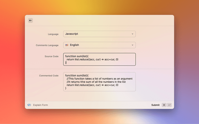 Code explainExplain Form