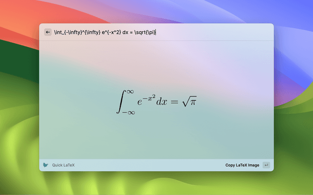 Converts LaTeX text to image. Copy the image to the Clipboard.