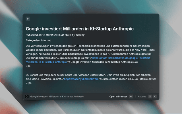 The official Raycast extension for the German tech blog Caschys Blog (www.stadt-bremerhaven.de)