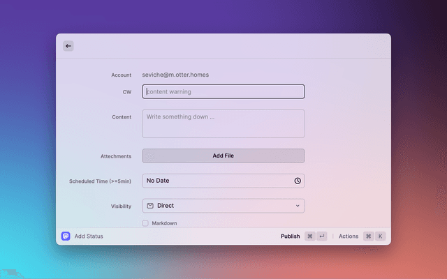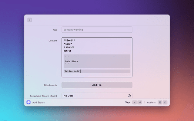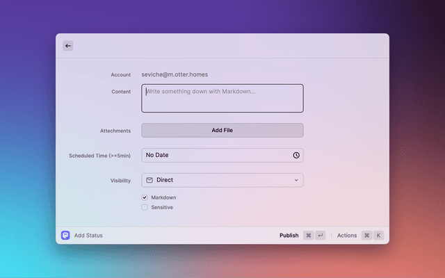 • Write status with markdown support.(Only if the instant supports Markdown)