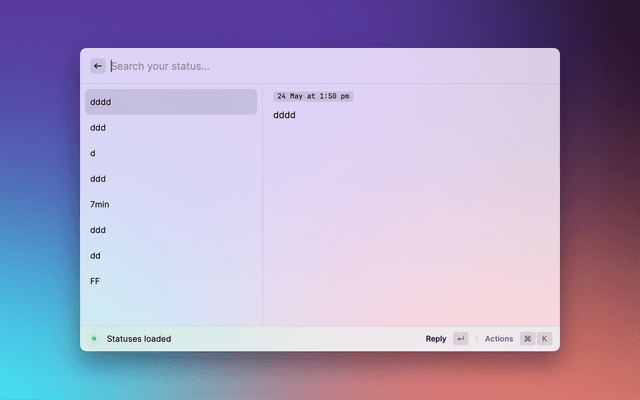 • Open the latest published status that was published from Raycast through the actions.