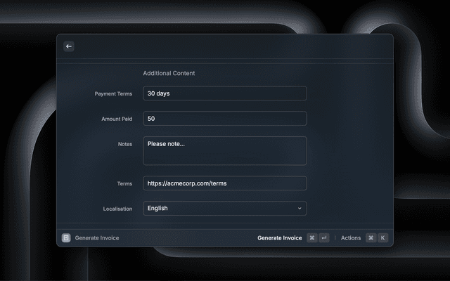 Choose which fields should be included in the form and set default values in the extension's preferences.
