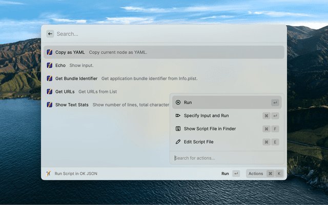 Run custom scripts with pasteboard content as the input or with specified input in OK JSON.