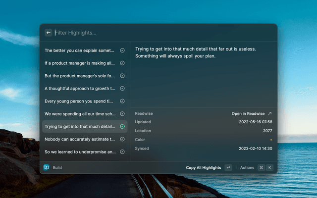 This extensions displays your Readwise highlights and gives you an easy way of copying the highlights to Tana.