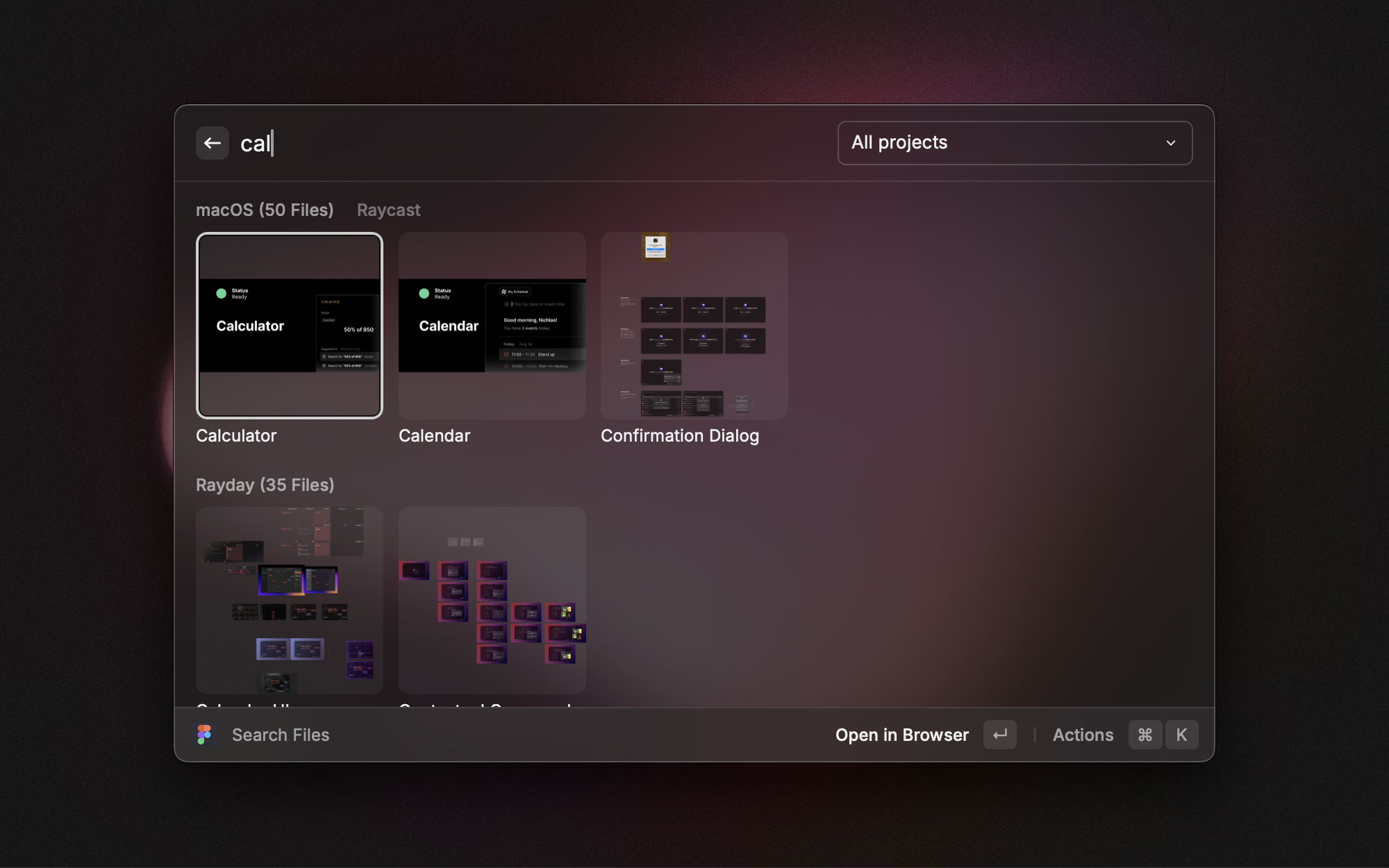 Navigating through Figma files can get overwhelming as more and more and files are created. The Figma File Search extension made by Michael Schultz allows you to quickly find and open the files you need, directly from Raycast.