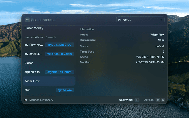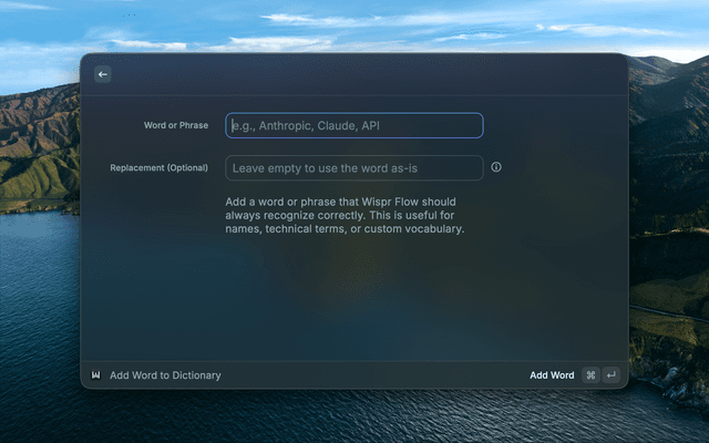 Add Word to DictionaryTeach Wispr Flow new words, names, or technical terms
