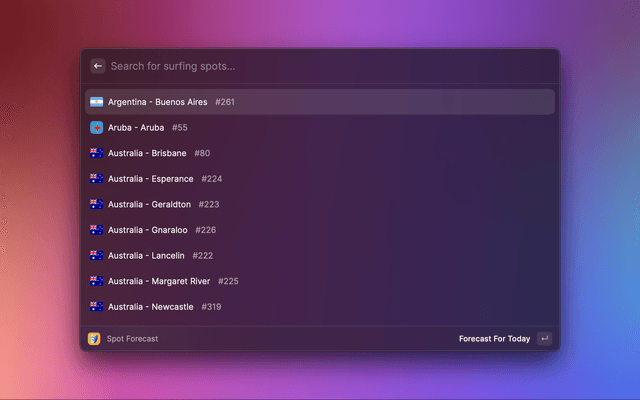 Currently Surfs Up only supports the mainstream locations from Windguru. The reason for this is that the sea data coming from these locations is more reliable and there are many other spots in Windguru where sea data isn't even present. To provide a better service, it was defined that the extension would start with less places, but with more quality data.