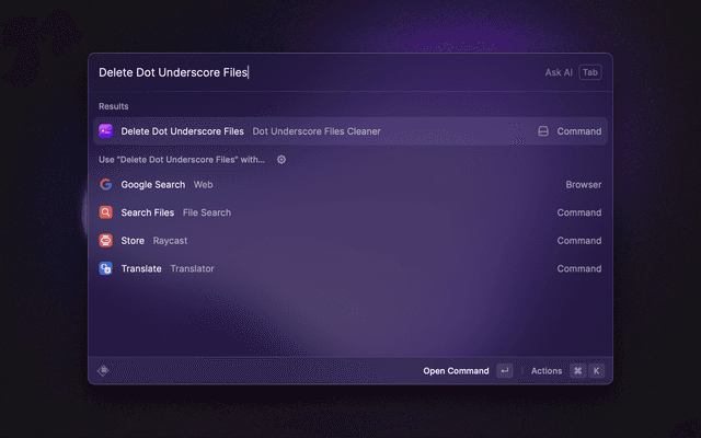 Delete ._ files in the selected folder and its subfolders