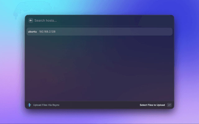 - Open Raycast and search for "Upload Files via Rsync"