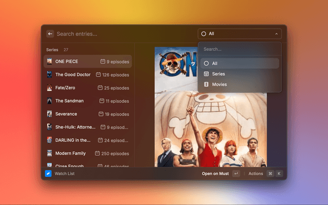 Only thing you have to do is to set desired user's username and you'll be able to display your Watch list from Raycast!