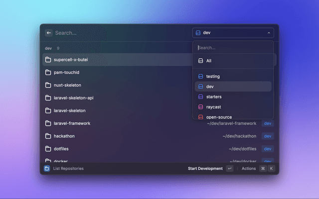 Every project can have a customized configuration file (.raycast/repository-manager.json) in the project root to customize behavior: