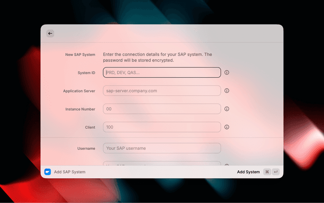Quickly connect to SAP systems with your saved credentials.