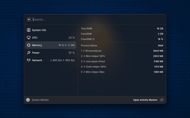 Raycast AIRaycast NotesRaycast FocusClipboard HistoryWindow ManagementSnippetsFile SearchQuicklinksCalculatorCalendarSystemEmoji Picker