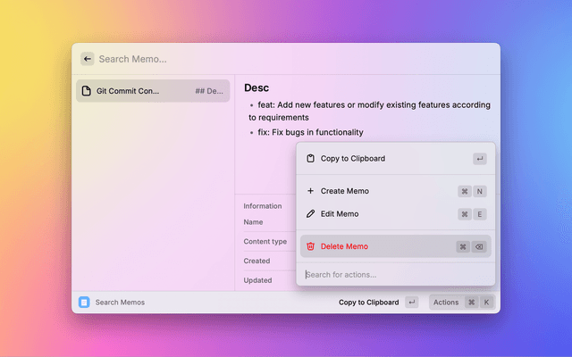 Create and manage your memos directly from Raycast with markdown support.