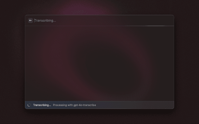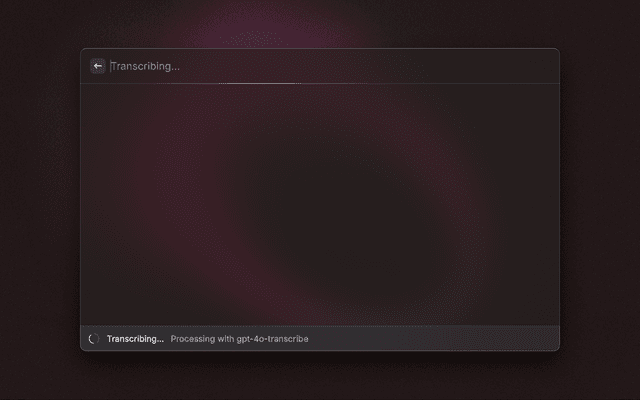 • Usage: Opens directly in recording mode, press Enter to stop and transcribe