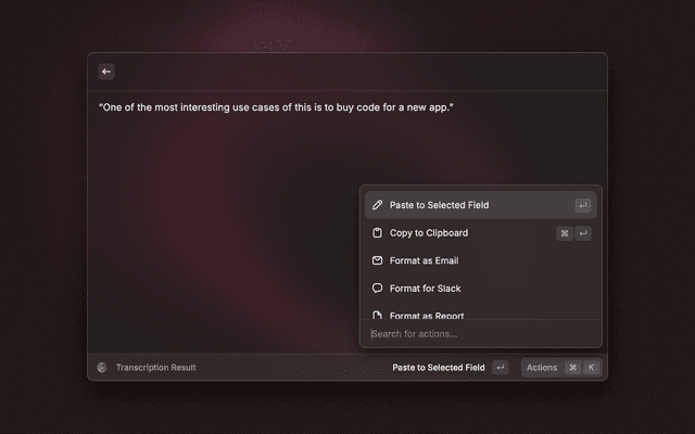 • Smart Formatting: Converts your text to different formats (Email, Slack, Report)