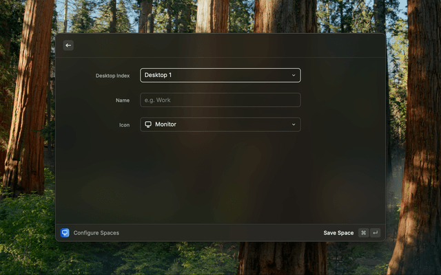 Allows you to name your spaces "Desktop 1" => "Work" and "Desktop 2" => "Personal"