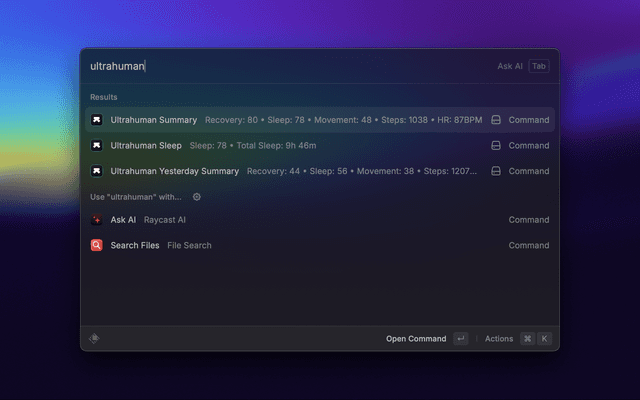• Finally, come back to Raycast and open the Ultrahuman extension