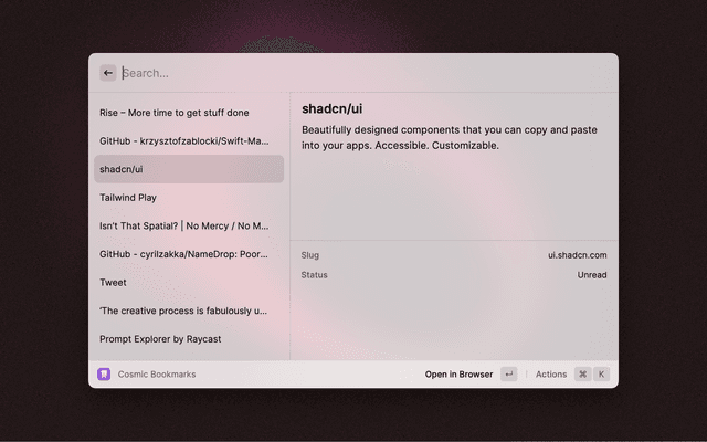 Read, visit and save Bookmarks to and from Cosmic CMS