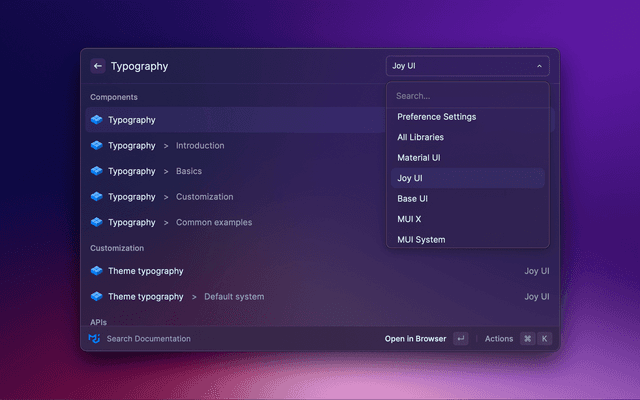 Contextualize your search based on a selection of MUI libraries. Excluding libraries that you are not interested in will improve the relevance of your search results.