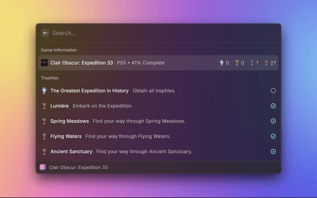 ๐ Trophy Tracking: Browse and search through your earned trophies