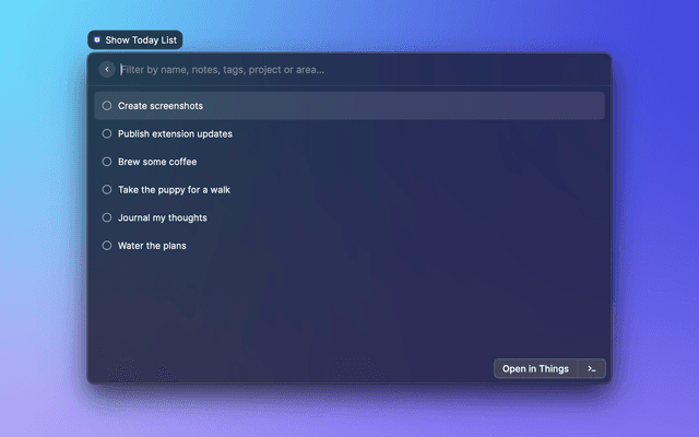 Search and manage your Things to-dos from Raycast.