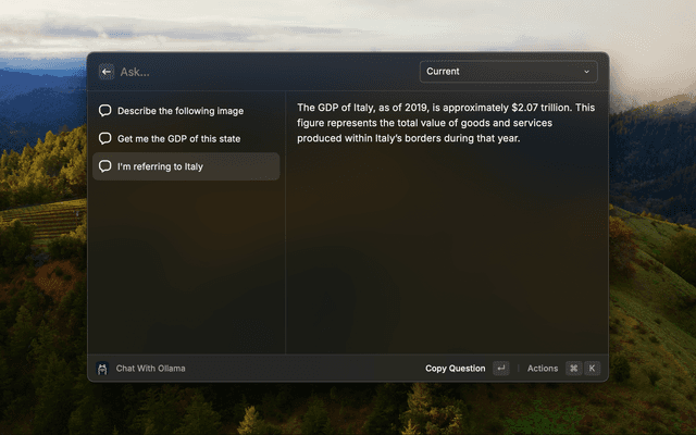Use Ollama for local llama inference on Raycast. This application is not directly affiliated with Ollama.ai.