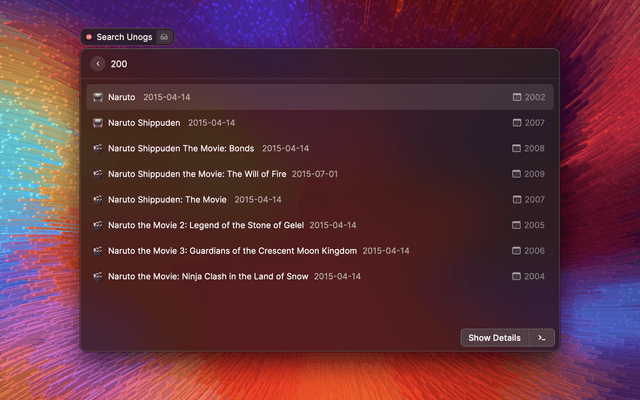 • On next step you will see the results, you can filter through the search results with name, year and even imdb_id.