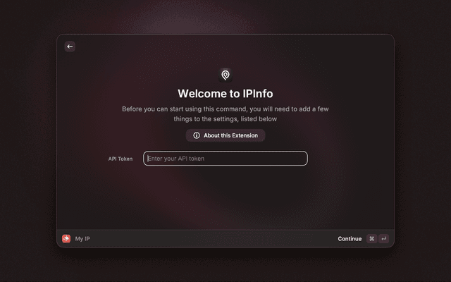 • You need to have a valid API token from ipinfo.io to use this extension.
