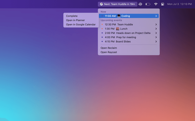 Learn more about using the Reclaim Raycast extension here.