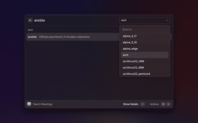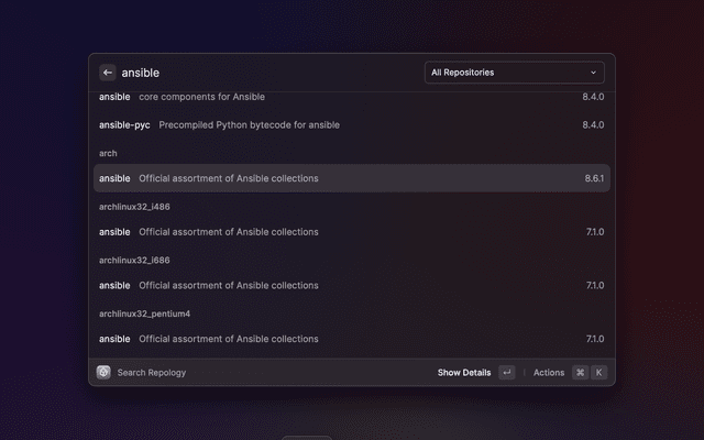 Search packages from repology.org