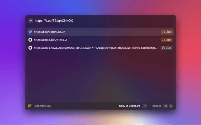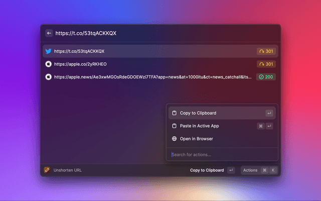 Unshorten/expand those pesky short links in your clipboard or text selection, enhancing your privacy and security.
