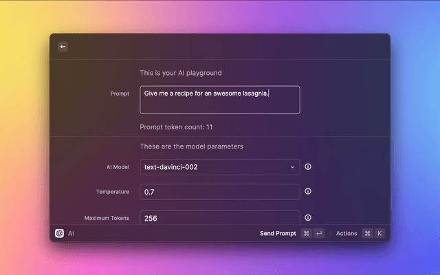All preferences properties list that can be customize through Raycast Settings > Extensions > Query OpenAI GPT