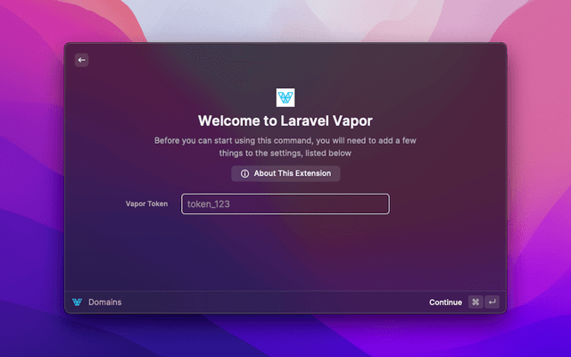 You must first provide a API token so the extension can access your Vapor data.