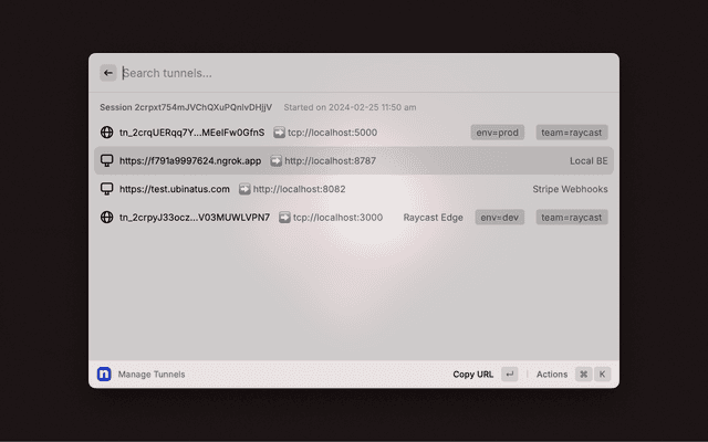 ngrok is a simplified, API-first ingress-as-a-service that adds connectivity, security, and observability to your apps with just one command. Be sure to explore the available actions in the action panel (⌘ + K).