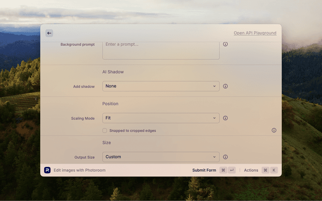 Please note, that the extension uses the Image Editing v2 API and needs a Photoroom API key which can be requested here: https://app.photoroom.com/api-dashboard