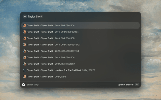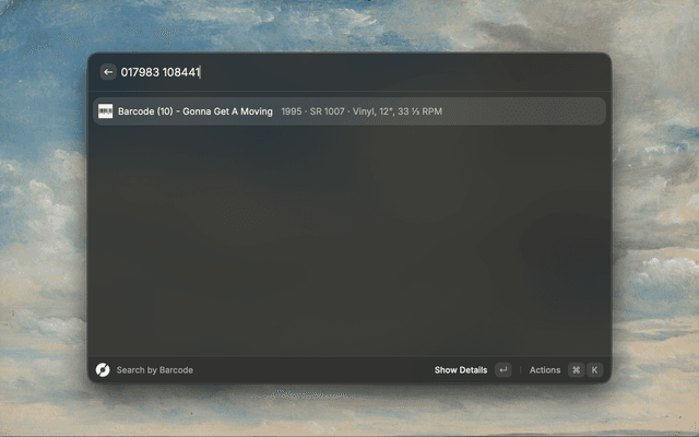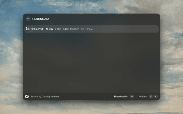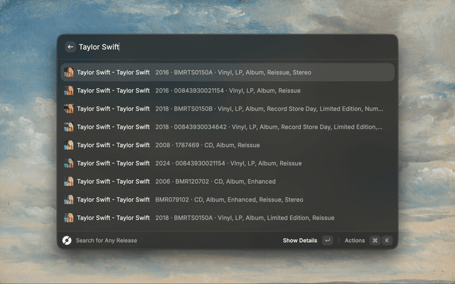 This Raycast extension allows you to easily search the Discogs database for releases.