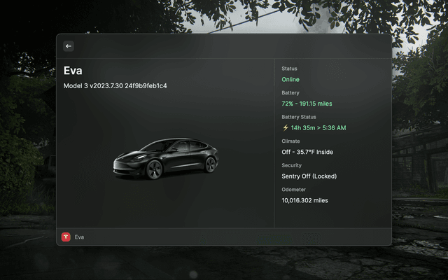 • Tesla API does not return rendered images of your car, so you must choose an image to display as your car