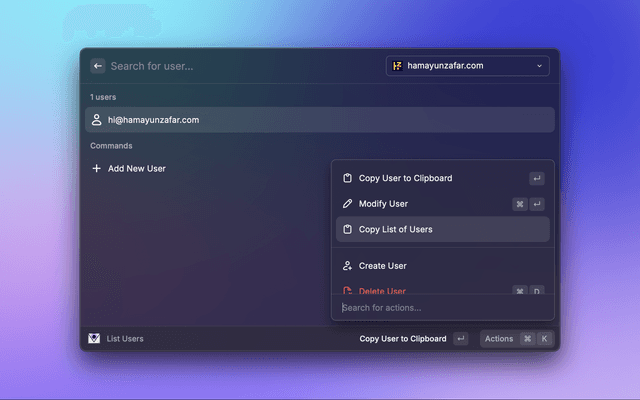 This is a Raycast extension for Purelymail. With this extension, you can quickly add or delete domains from your Purelymail account, create or delete users for your domains, create or delete Routing Rules, create or delete app passwords and Check Account Credit.