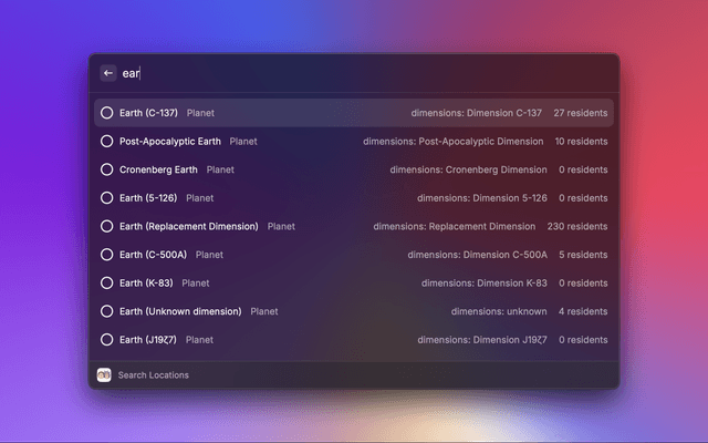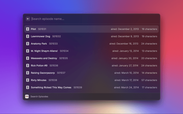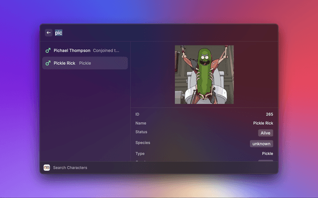 Access characters, images, locations and episodes from the television show "Rick and Morty"