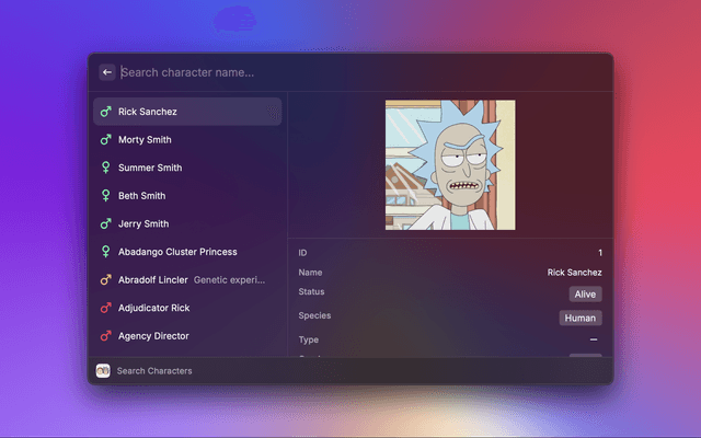 Access characters, images, locations and episodes from the television show "Rick and Morty" via the API at https://rickandmortyapi.com/.