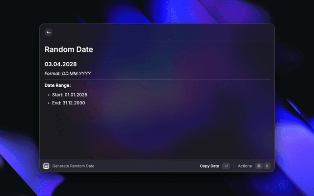 Generate random dates within a specified date range.