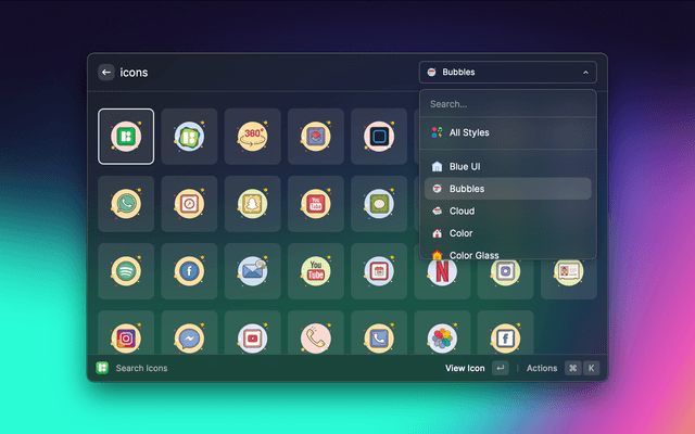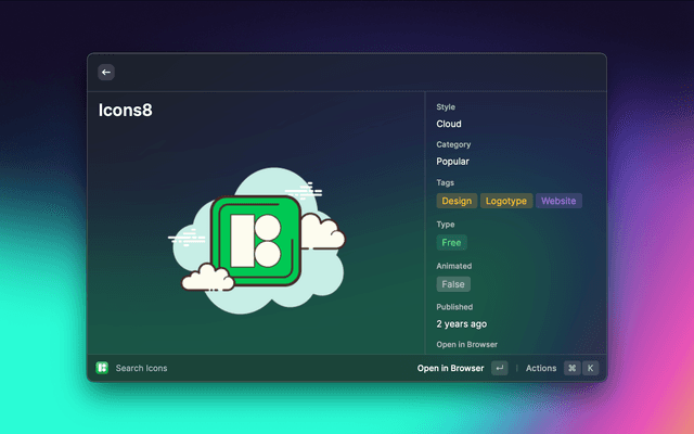 Search and preview icons from Icons8 large library. Configure and recolor icons.